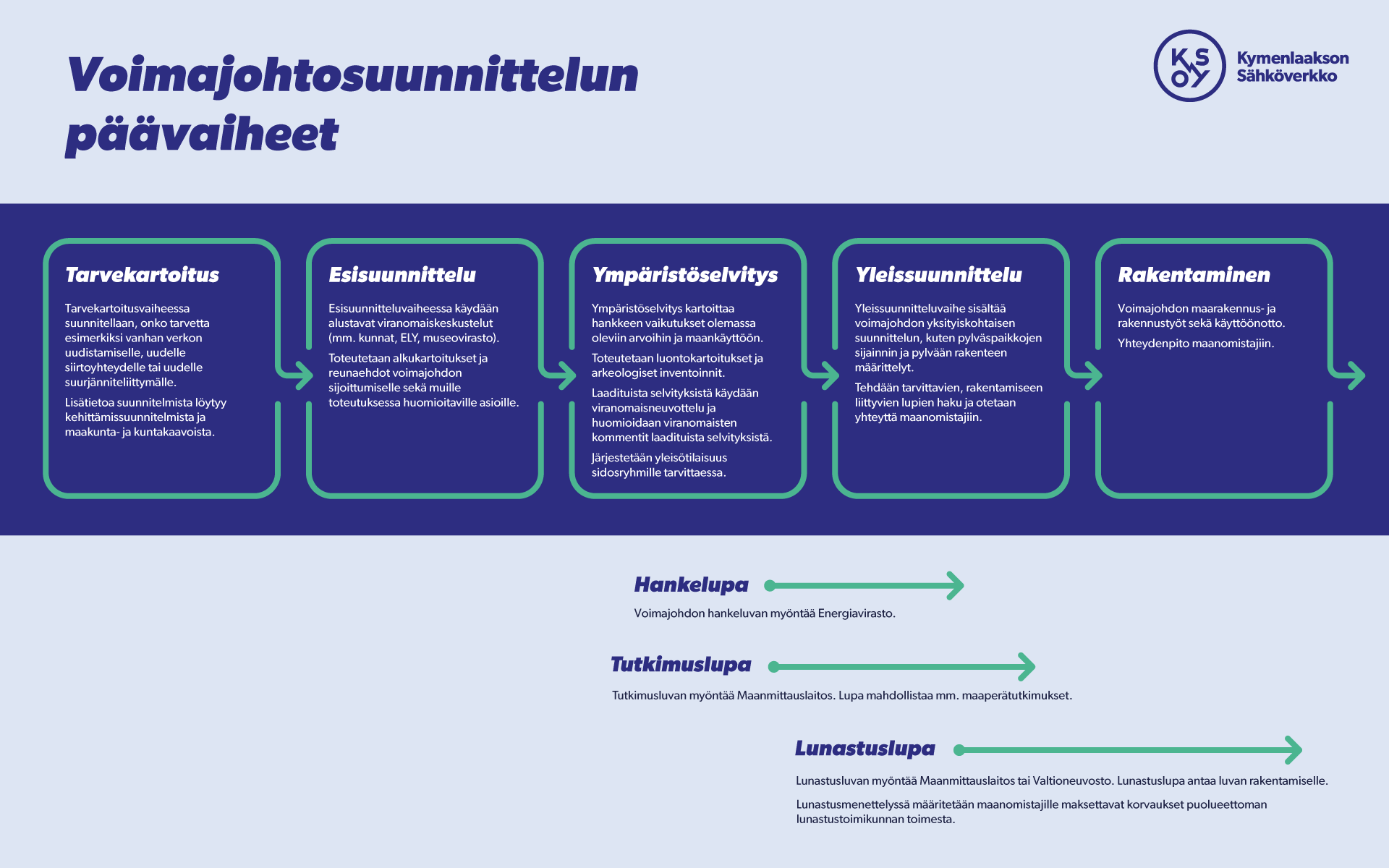 Suurjännitteisellä jakeluverkolla mahdollistetaan sähkönsiirto suurille kulutus- ja tuotantokohteille sekä muuntoasemien kautta pien- ja keskijännitteiseen jakeluverkkoon. Kymenlaakson Sähköverkko on suurjännitteisen jakeluverkon verkonhaltija, jonka toiminta-alueella on yhteensä noin 400 kilometriä suurjännitteistä jakeluverkkoa. Verkonhaltijan velvollisuuksiin kuuluu, sähkömarkkinalain mukaisesti, tarjota verkkopalveluita eri osapuolille tasapuolisesti ja syrjimättömästi toiminta-alueellaan. Suurjännitteistä jakeluverkkoa kehitetään verkon kunnon perusteella sekä uusien kulutus- ja tuotantohankkeiden tarpeiden mukaisesti. Osa vanhimmista suurjännitejohdoista on teknisen käyttöikänsä päässä ja niitä uusitaan ikänsä puolesta. Kasvava tai uusi sähkön kulutus- tai tuotantotarve voi edellyttää olemassa olevan sähköverkon vahvistamista tai kokonaan uusien voimajohtojen rakentamista.