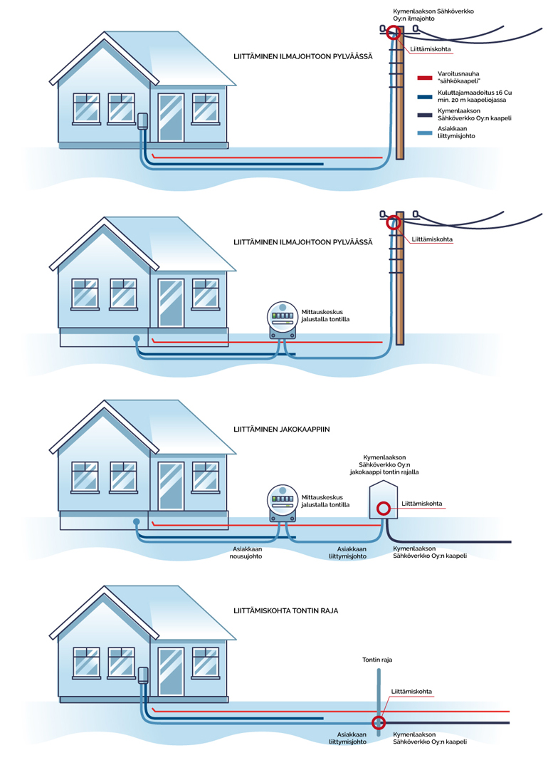 Elcentralen tillhör kunden (grön). Gränsen för ansvaret löper vid anslutningspunkten (röd).